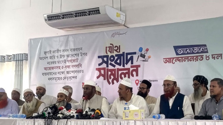 জোটটি আরও ঘোষণা করেছে, আগামী রোববার সকাল ১১টায় আট দলের শীর্ষ নেতারা বৈঠক করবেন। বৈঠক শেষে দুপুর সাড়ে ১২টায় সংবাদ সম্মেলন অনুষ্ঠিত হবে। এর আগে দাবি মেনে নেওয়া না হলে সংবাদ সম্মেলন থেকে প্রধান উপদেষ্টার বাসভবনের সামনে অনির্দিষ্টকালের জন্য অবস্থান কর্মসূচির ঘোষণা করা হবে।