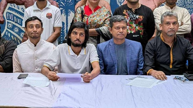 চারুকলা অনুষদে আয়োজিত সংবাদ সম্মেলনে ডাকসুর সাহিত্য ও সংস্কৃতি সম্পাদকের সঙ্গে সমাজসেবা সম্পাদক এবি যুবায়ের, স্বাস্থ্য বিষয়ক সম্পাদক আব্দুল্লাহ আল মিনহাজ ও বিপ্লবী সাংস্কৃতিক ঐক্যের সভাপতি মৃন্ময় মিজান উপস্থিত ছিলেন।