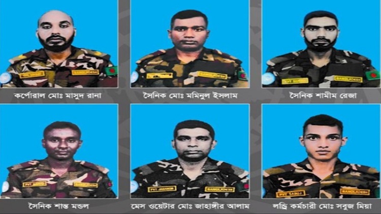 শহীদ শান্তিরক্ষী সদস্যরা হলেন— কর্পোরাল মো. মাসুদ রানা, এএসসি (নাটোর); সৈনিক মো. মমিনুল ইসলাম, বীর (কুড়িগ্রাম); সৈনিক শামীম রেজা, বীর (রাজবাড়ী); সৈনিক শান্ত মণ্ডল, বীর (কুড়িগ্রাম); মেস ওয়েটার মোহাম্মদ জাহাঙ্গীর আলম (কিশোরগঞ্জ); লন্ড্রি কর্মচারী মো. সবুজ মিয়া (গাইবান্ধা)।