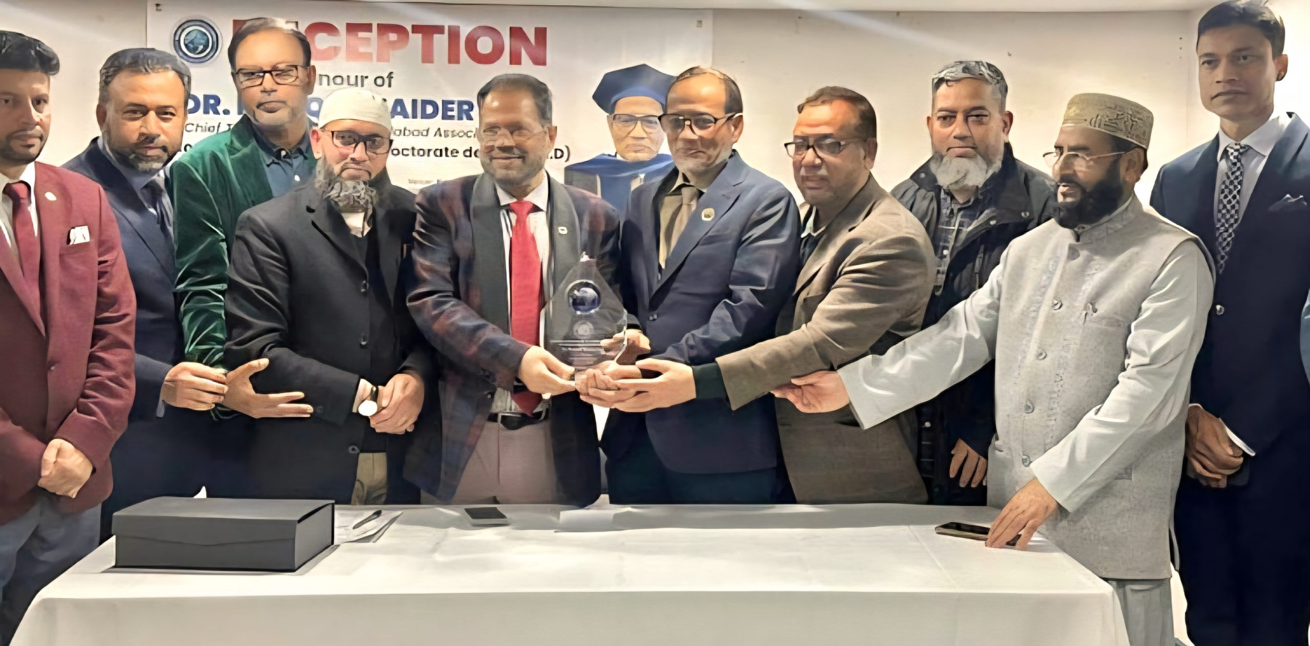 লন্ডন অফিস: গ্লোবাল জালালাবাদ এসোসিয়েশনের কেন্দ্রীয় কমিটির চীফ ট্রেজারার রফিকুল হায়দার পিএইচডি ডিগ্রি অর্জন করায় সংগঠনের পক্ষ থেকে তাঁকে এক বর্ণাঢ্য সংবর্ধনা প্রদান করা হয়।