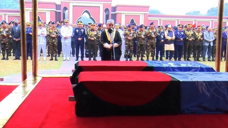 আজ জানাজা শেষে তাদের নিজ নিজ ঠিকানায় হেলিকপ্টারে করে পাঠিয়ে যথাযথ সামরিক মর্যাদায় দাফন কার্যক্রম সম্পন্ন করা হবে।