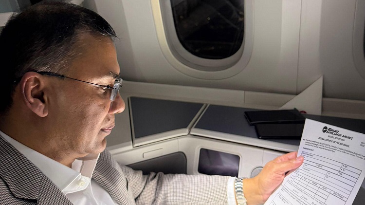 ঢাকা বিমান বন্দরের ভিআইপি লাউঞ্জে, পাশে শাশুড়ি, কথা বলছেন প্রধান উপদেষ্টার সঙ্গে ফোনে। বিএনপির মিডিয়া সেলে পোস্ট করা এক ভিডিওতে দেখা যায়, প্রধান উপদেষ্টা ড. মুহাম্মদ ইউনূসের সঙ্গে ফোনে কথা বলেছেন তারেক রহমান। প্রধান উপদেষ্টার শারীরিক অবস্থার খোঁজ-খবর নেন বিএনপির ভারপ্রাপ্ত চেয়ারম্যান। নিজের এবং পরিবারের সবার পক্ষ থেকে প্রধান উপদেষ্টাকে ধন্যবাদ দেন তিনি।